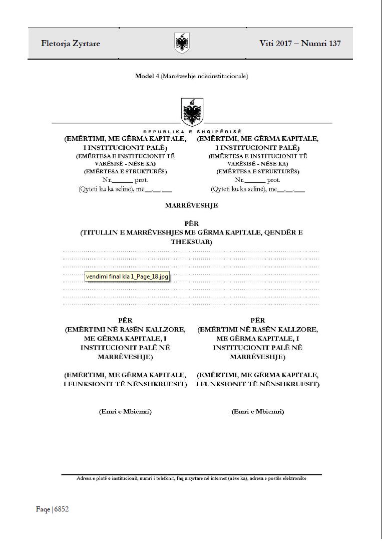 Njësimi i shkresës zyrtare me modele të paracaktuara, përbën elementin më të rëndësishëm të rregullores.