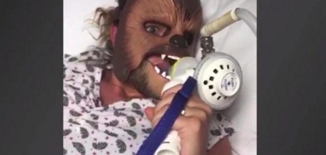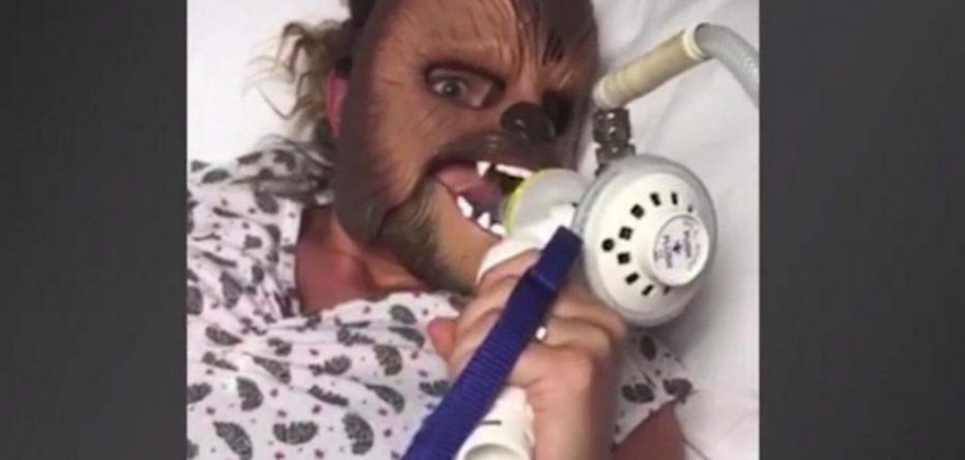 Një grua shtatzënë ka menduar që gjatë kohës që do të ishte duke lindur foshnjën të përdorte një maskim në mënyrë që burri të mos shikonte fytyrën dhe dëgjonte dhimbjet e saj.