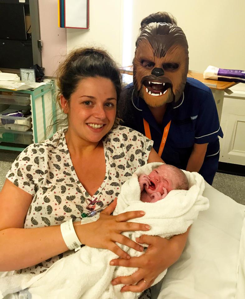 Aimee Smith, 26 vjeç, nga Barrow-in-Furness në Angli , bleu maskën elektronike, të cilën e përdori gjatë kohës që ishte në sallën e operacionit për lindjen e djalit të saj, Albie.