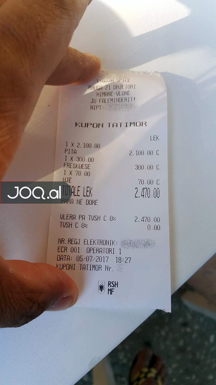 Djemtë kanë treguar për JoQ se porositën 3 sufllaqe dhe disa pije freskuese. Pasi mbaruan ushqimin dhe kërkuan faturën vunë re me lemeri se çmimi i një sufllaqeje ishte 700 lekë (të reja).