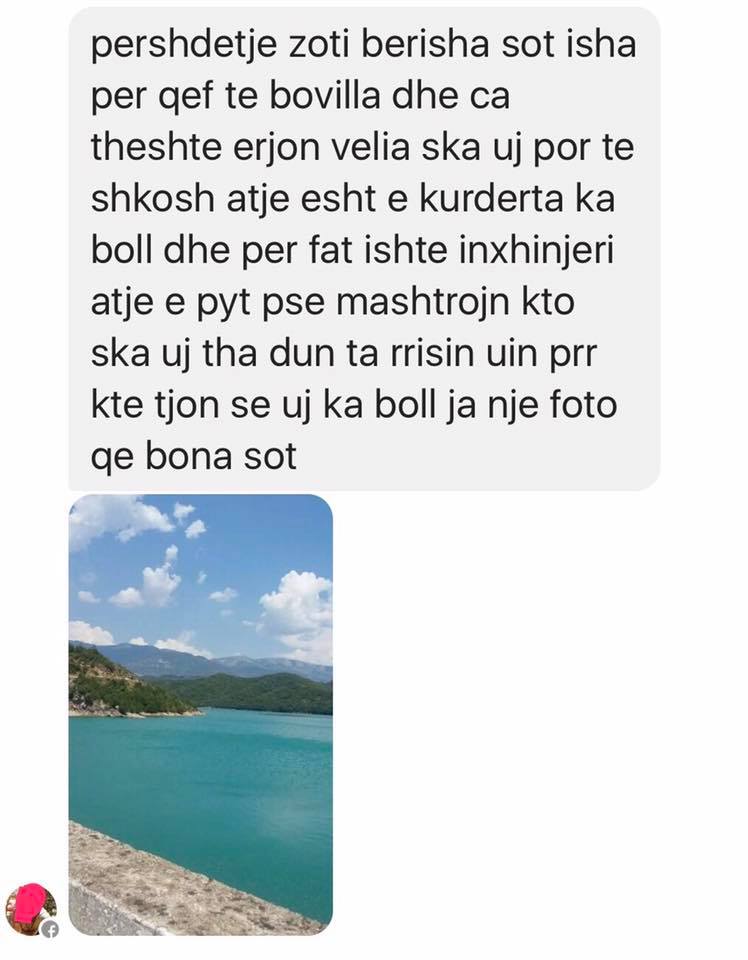 Lexoni mesazhin dhe shikoni foton e liqenit të Bovillës që ka dërguar për ju qytetari dixhital”.