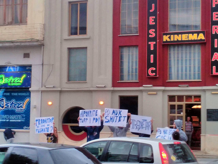 Jashtë dhe brenda sallës ku po zhvillohet takimi demokratët i kanë pritur deputetët me pankarta ku shkruhej “Mosmirënjohës”, “Të shitur”, “Bukëshkalë”.