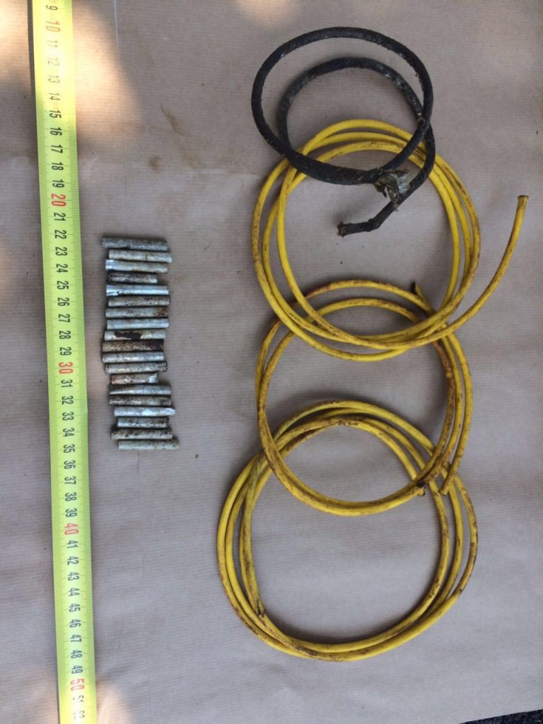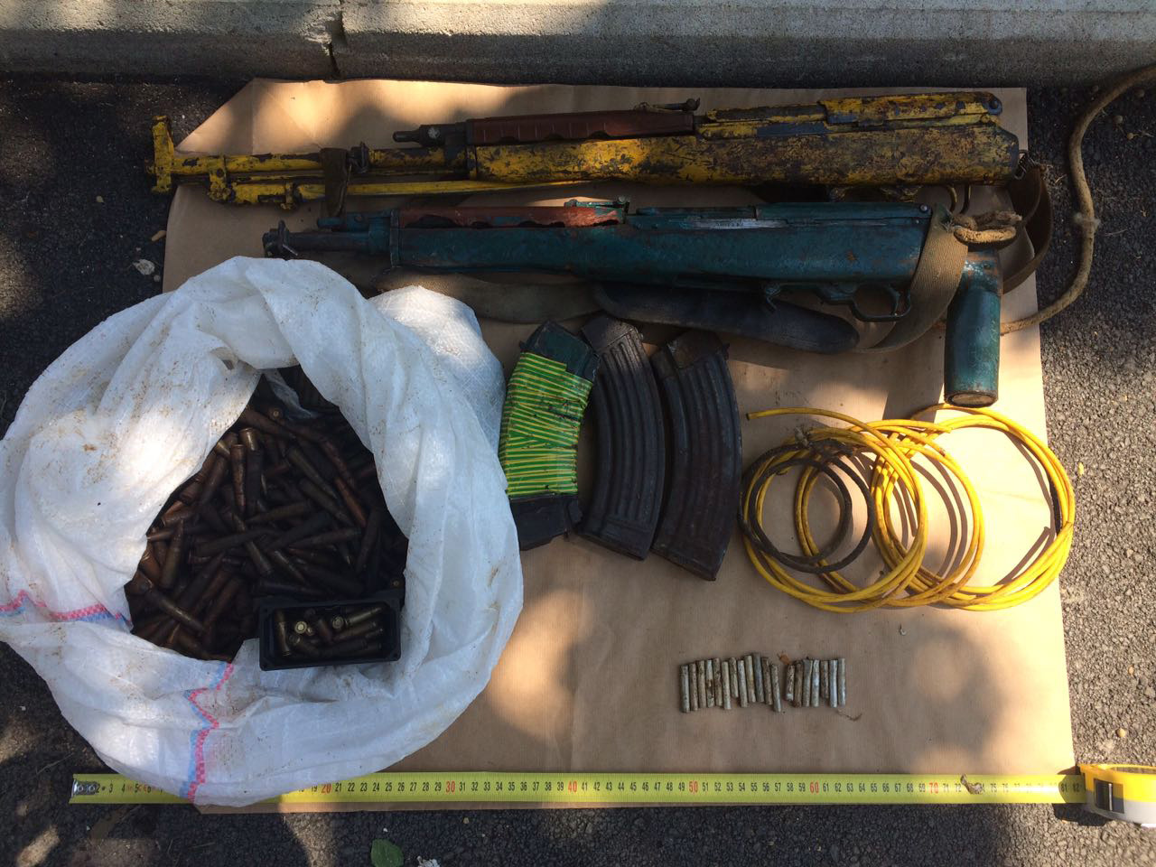Në një ambient pranë banesës së tij, ju gjetën të fshehura dy pushkë, 19 kapsolla detonatorë, 5 metra fitil zjarrpërcjellës, 835 fishekë dhe 3 karikatorë.