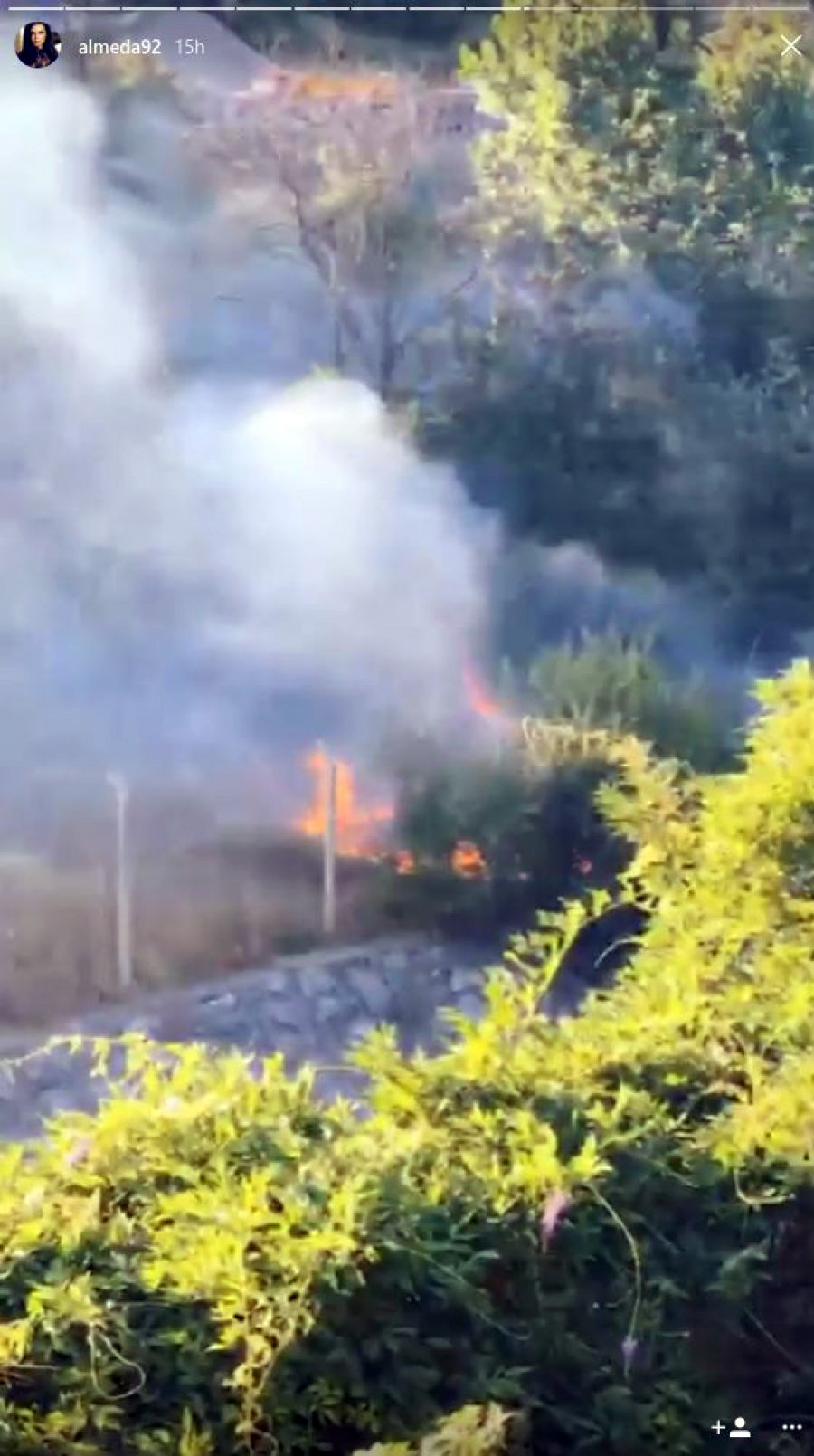 Për shuarjen e flakëve po punohet duke hedhur ujë me helikopter, ndërsa forcat e Zjarrfikëses dhe të Pyjores nuk mund të ndërhyjnë për shkak të terrenit të thyer.