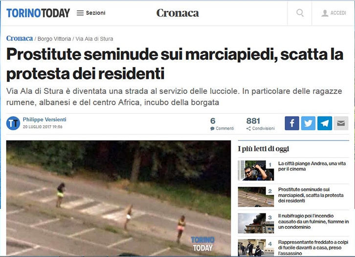 Zona “Borgo Vittoria” në Itali është famëkeqe për prostitutat që e kryejnë profesionin në ambiente publike. Gjysmë-lakuriq, ato dalin në rrugë për të joshur klientët e tyre, me të cilët më pas kryejnë dhe marrëdhënie në rrugë pa pikë problemi.