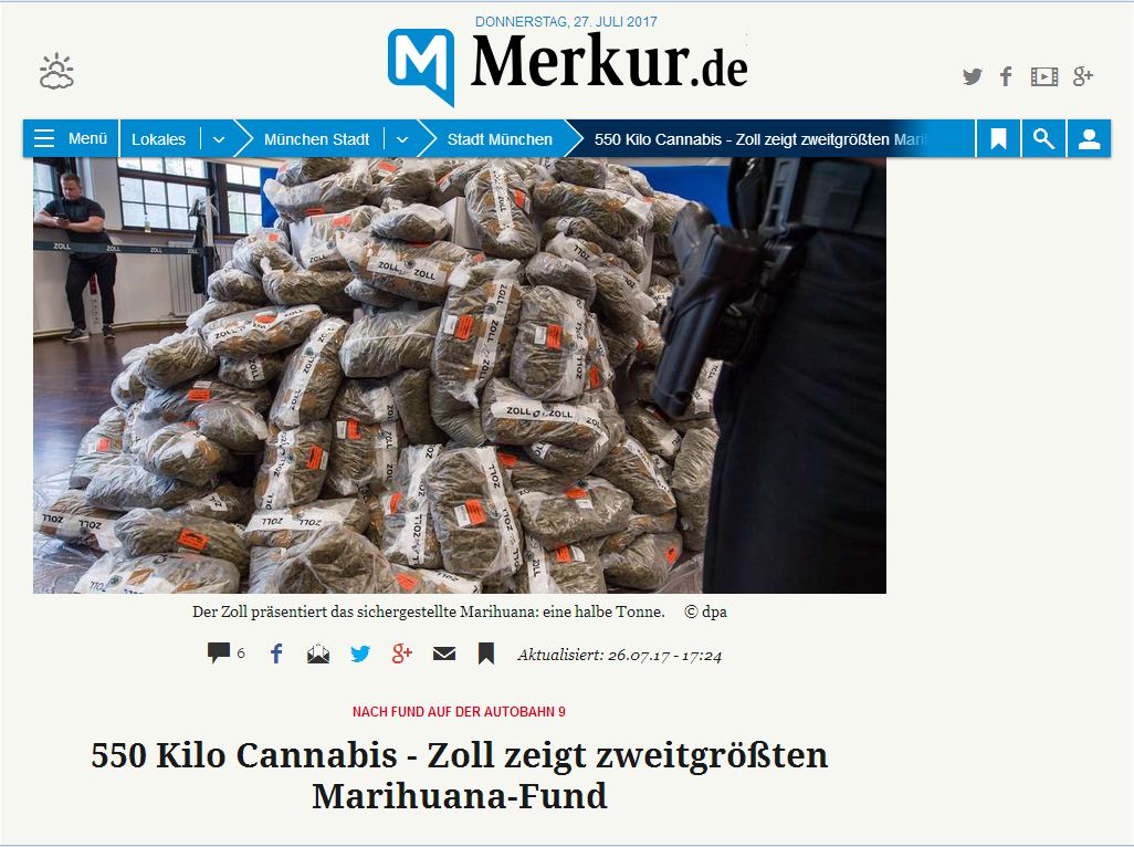 Sipas mediave gjermane kjo sasi është e dytë më të madhe të kapur viteve të fundit në Bavari, pasi në vitin 2013 në Nürnberg u sekuestruan 625 kilogramë drogë.