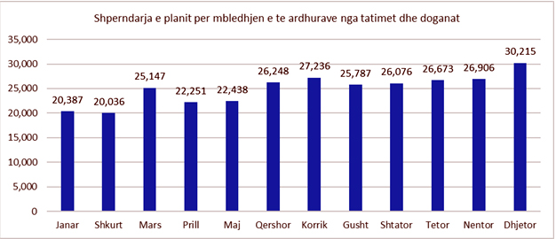Vlera më e lartë e planit te arkëtimit mujor përqendrohet në muajin dhjetor me rreth 30 miliardë lekë.