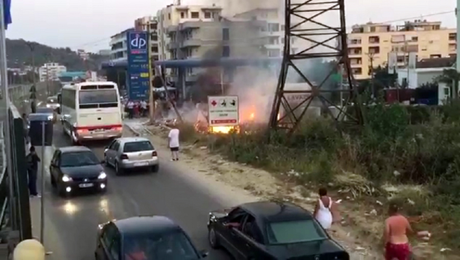 Një ngjarje rëndë është duke ndodhur në Golem, ku një tel i tensionit të lartë është shkëputur, duke rëndë në afër një karburanti.