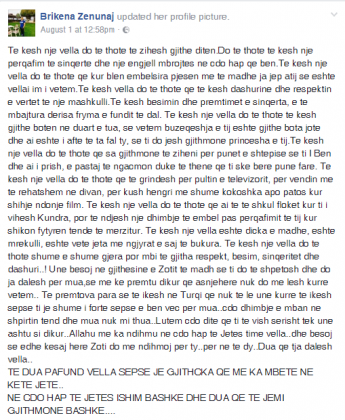 Disa ditë më parë Brikena, motra e Hektor Zenunit lutej për të dhe i bënte thirrje të vëllait te mos dorëzohej.