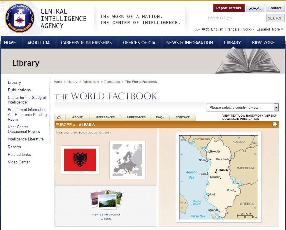 Agjencia Qendrore e Inteligjencës së SHBA-së, CIA, ka azhurnuar së fundmi të dhënat për Shqipërinë, ku sipas saj, ekonomia e Shqipërisë është përmirësuar në mënyrë të vazhdueshme dhe rritja ekonomike pritet të rritet në 3.8% në vitin 2017.