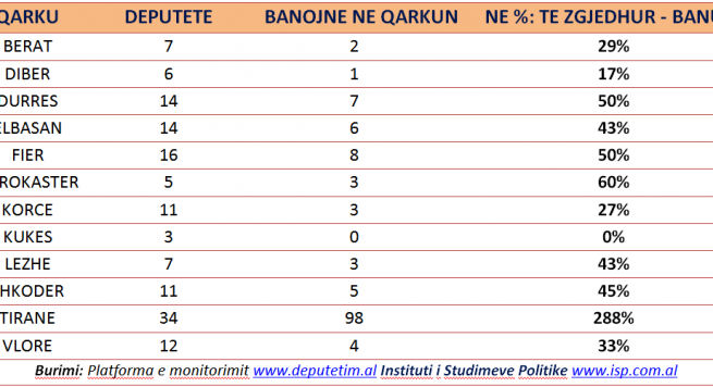 Ka qarqe si Kukësi ku asnjë deputet i zgjedhur më 2017 nuk banon në qark, apo si Dibra ku vetëm 1 nga 6 deputetët e zgjedhur banon në qark.