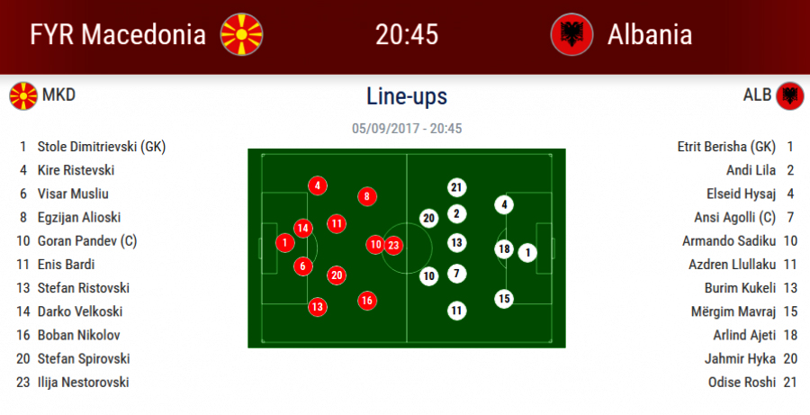 Sonte në orën 20:45 në stadiumin e Strumicës, në Maqedoni, do të luhet ndeshja e Grupit G mes Maqedonisë dhe Shqipërisë.