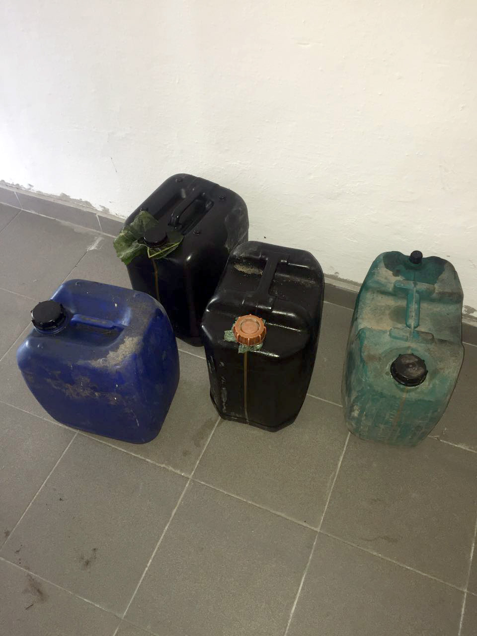 – 8 bidonë ( 30 L në bagazhin e automjetit të sekuestruar)