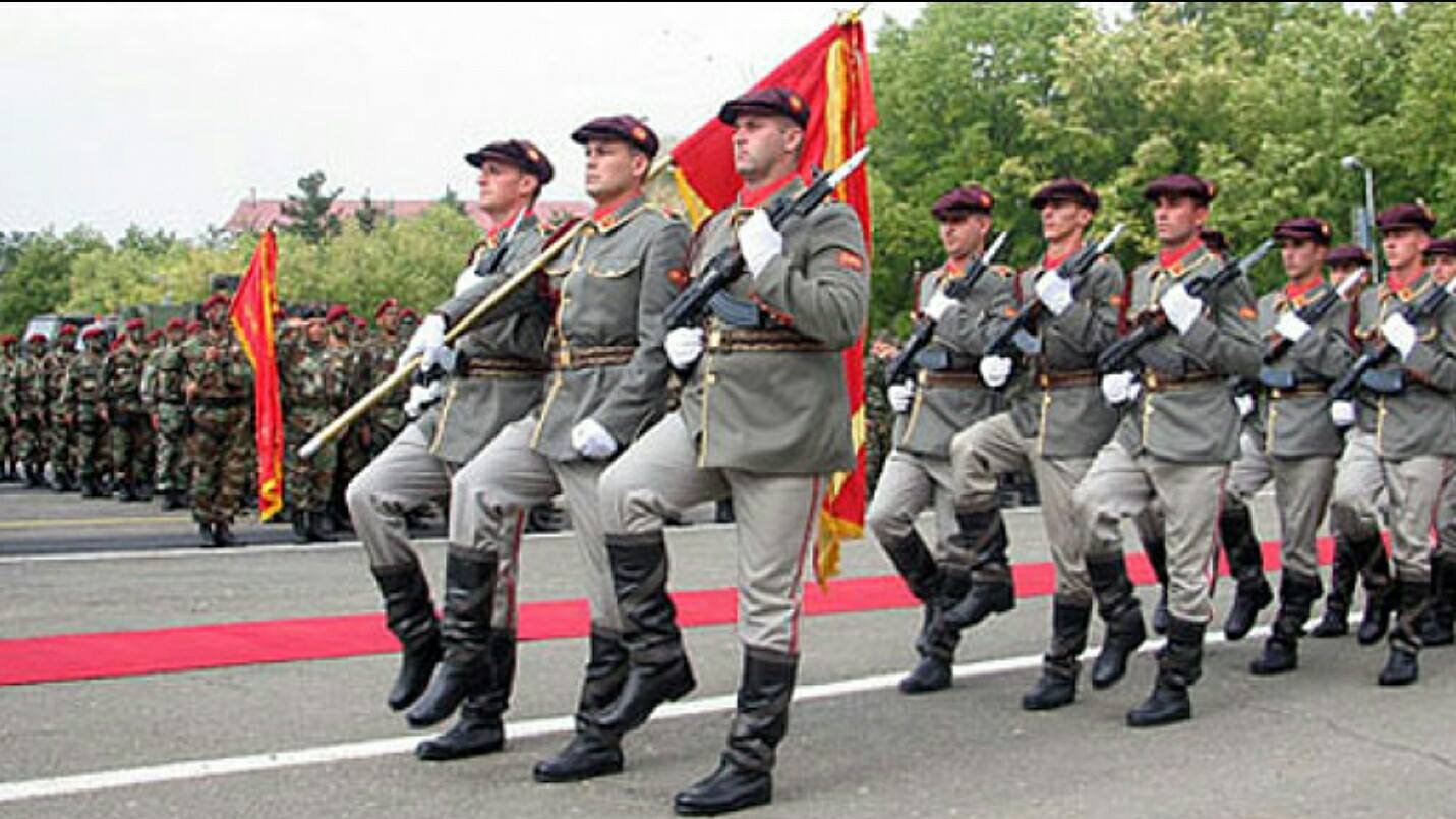 Deri këtu nuk ka asgjë të keqe, por gafa qëndron se përbri stemës së Ministrisë së Mbrojtjes, në vend të vendosnin një fotografi të ushtarëve shqiptarë, është vendosur foto e ushtarëve maqedonas duke parakaluar në një paradë të mbajtur në Shkup disa kohë më parë.