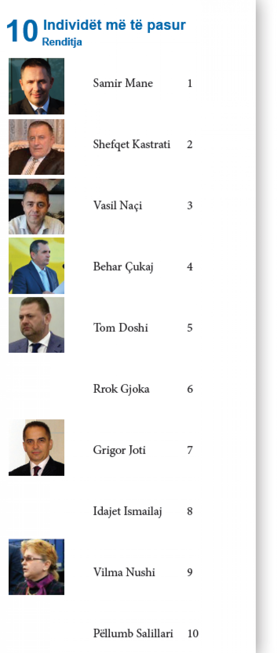 Lista e më të pasurve kryesore nga Samir Mane dhe në listë janë Vilma Nushi dhe deputeti Tom Doshi.