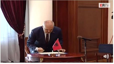 Kryeministri Rama ka firmosur në fillim në librin e betimit të qeverisë por ndryshe nga sa parashikohet ai nuk e ka vënë dorën mbi Kushtetutë.