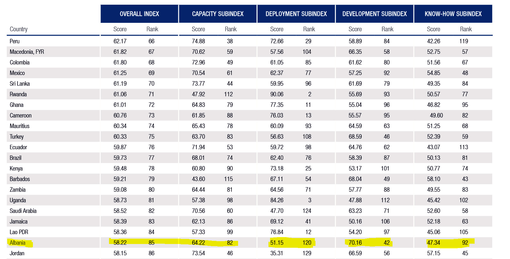 – Së fundi, “të dish se si” mundësitë dhe njohuritë për përmbushje profesionale, aftësi në punëmarrje dhe në njohuri. Shqipëria renditet e 92 nga 130 shtetet e marra në studim. Monitor