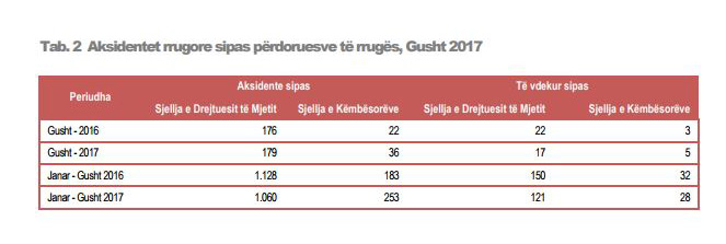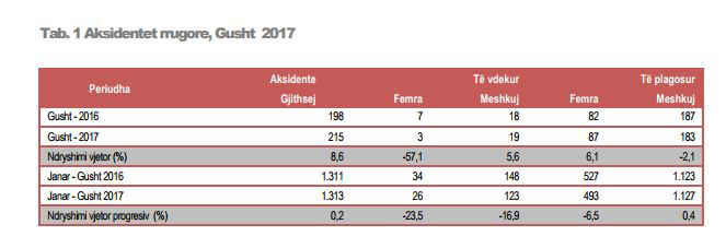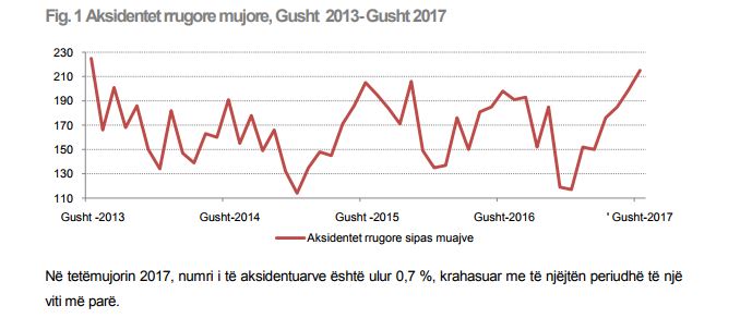 Në muajin Gusht 2017 numërohen 215 aksidente rrugore nga 198 aksidente të ndodhur në Gusht 2016.