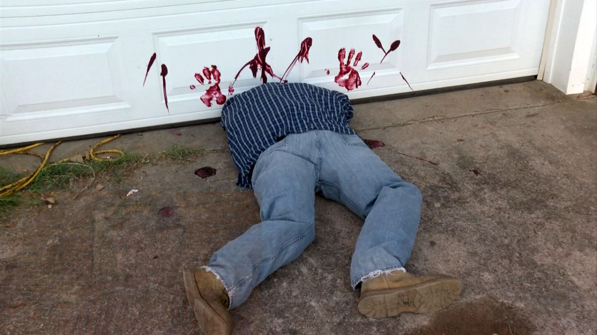 Bëhet fjalë për një kukull me kokën e prerë e të vendosur në derën e një garazhi, ku nuk mungojnë edhe njollat e kuqe. E gjithë kjo pamje të krijon idenë e një burri të vdekur, koka e të cilit është prerë nga dera e garazhit.