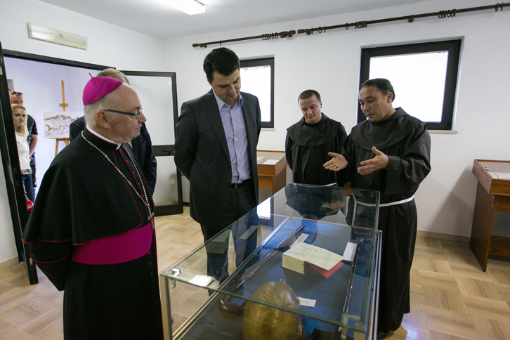 “I rekomandoj kujtdo që nuk e ka parë këtë ekspozitë, ta shoh. Mesazhi i At Zef Pëllumit ia vlesh shumë pasi sot na kërcënohet liria, liria e zgjedhjet. Jeta dhe veprat e At Zef Pëllumit janë një kushtrim për lirinë. Vepra e tij ‘Rrno vetëm për me tregue’, duhet të jetë në tekstet shqiptare. Si një kushtrim për njerëzit e lirë, se ja vlen çdo sakrificë kur liria kërcënohet. Veprat dhe jeta e At Zef Pëllumbit nuk e ka vendin në muze por në jetën e përditshme të shqiptarët, pasi aty e ka vendin e keqja”, tha Basha.