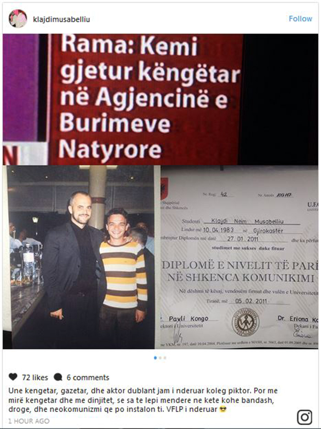 Postimi i Klajdi Musabelliut në rrjetet sociale