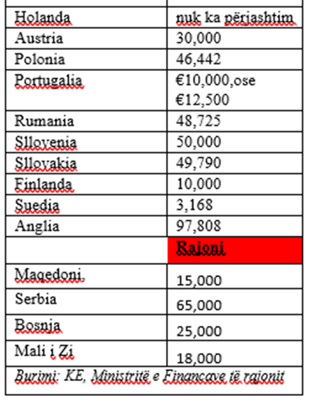 Edhe në Rajon ka një nivel të ngjashëm qarkullimi vjetor që tatohet me TVSH. Kroacia e ka pragun e tatimit me TVSH 30 mijë euro, sipas të dhënave të vitit 2017 të azhurnuara nga KE. Bosnja e aplikon TVSH në bizneset që qarkullojnë më shumë se 25 mijë euro në vit. Ndërsa shihet se pragun më të lartë e ka Serbia, e cila e nis të vjelë TVSH në bizneset që kanë xhiron vjetore mbi 66 mijë euro. Në Maqedoni kufiri i përfshirjes në TVSH aktualisht është 15 mijë euro. Maqedonia e uli pragun në vitin 2015, teksa para këtij viti pragu ishte 30 mijë euro. Në Mal të Zi pragu është 18 mijë euro. Në Bosnjë kufiri është 25 mijë euro.