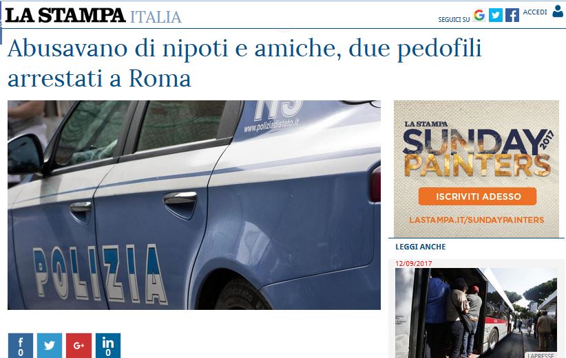 Policia italiane ka prangosur një shqiptar, 43-vjeçar, akuzuar për pedofili. Mediat italiane duke iu referuar policisë raportojnë se shqiptari me iniciale Z. L., u arrestuar së bashku me një italian, 37-vjeçarin A. D., pasi familja ku hynin e dilnin prej kohësh, zbuloi gjëmën që u bënin.