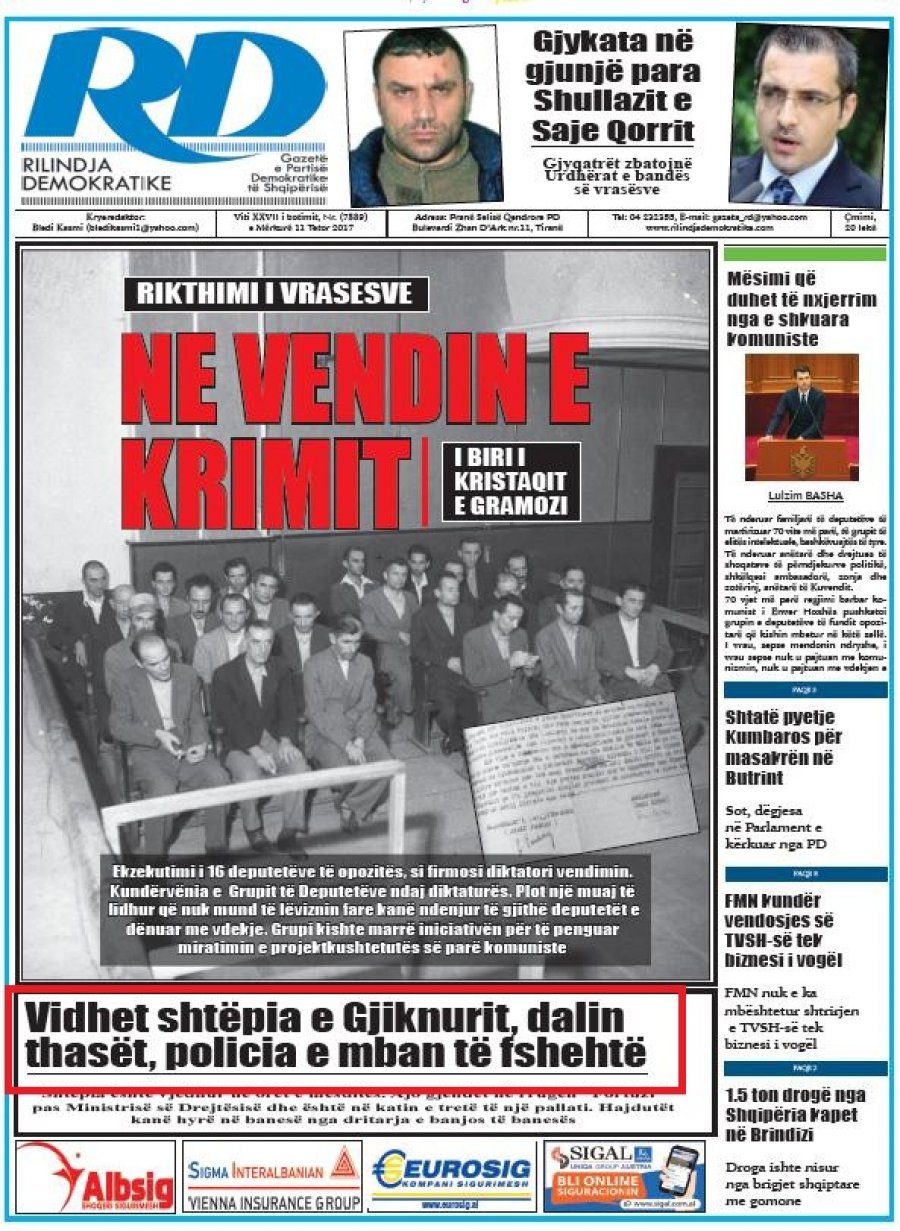 Gazeta “Rilindja Demokratike” ka një shkrim sot me titull “Vidhet shtëpia e Gjiknurit, dalin thasët, policia e mban të fshehtë”.