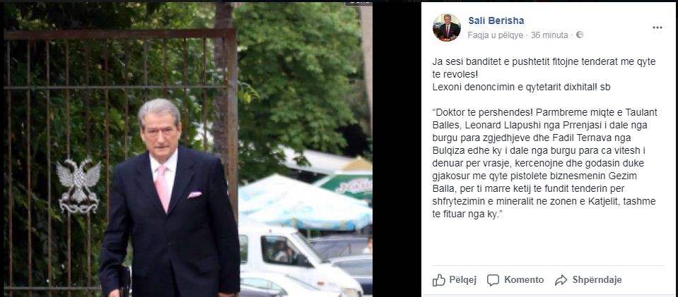 Postimi i plotë i Sali Berishës në “Facebook”