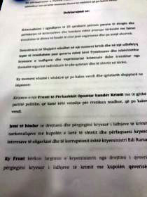 “Kërkojmë largimin e Ramës nga kreu i qeverisë. Rama është përgjegjëse për lidhjet e krimit me shtetin. Të vendosur që Rama të ikë me mjete demokratike. Prokuroria të nisë hetimet për Saimir Tahirin dhe të ketë hetim për ministra të tjerë të lidhur me krimin”.
