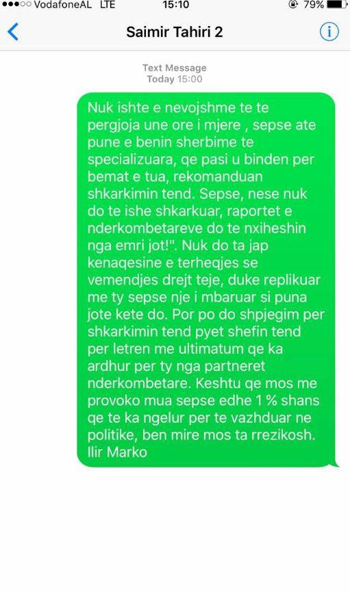 Ky ishte mesazhi qe ish zëvendësministri Marko i dergonte Saimir Tahirit ne 22 qershor: