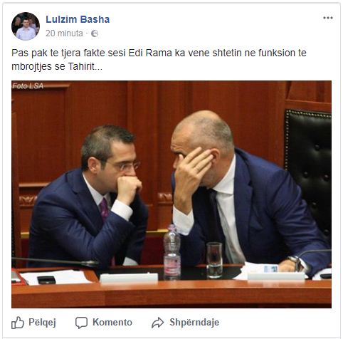 “Pas pak të tjera fakte sesi Edi Rama ka vënë shtetin në funksion të mbrojtjes së Tahirit…”.