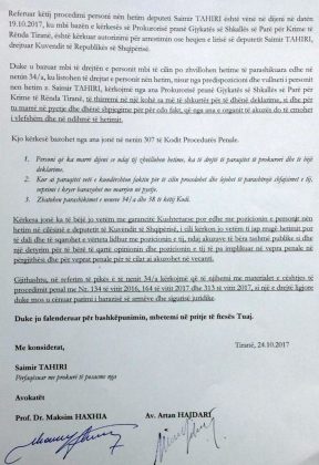 Dhe ja cila është kërkesa që ai i ka drejtuar tri prokurorëve që kërkojnë arrestimin e tij…, të vërë veten “në gatishmëri”, për tu paraqitur për shpjegime para prokurorëve…