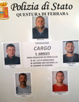 Një sasi e madhe droge është kapur në Itali, e cila vinte nga Spanja. Operacioni është kryen në Ferrara, dhe vlera e drogës në treg do të arrinte vlerën e 1 milion euro, shkruan estense.com.