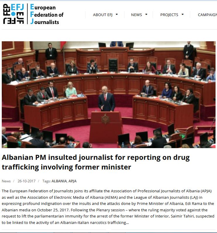 EFJ mbështet shqetësimin e gazetarëve shqiptare pas fyerjeve dhe intimidimit që bëri kryeministri Edi Rama një ditë më parë.