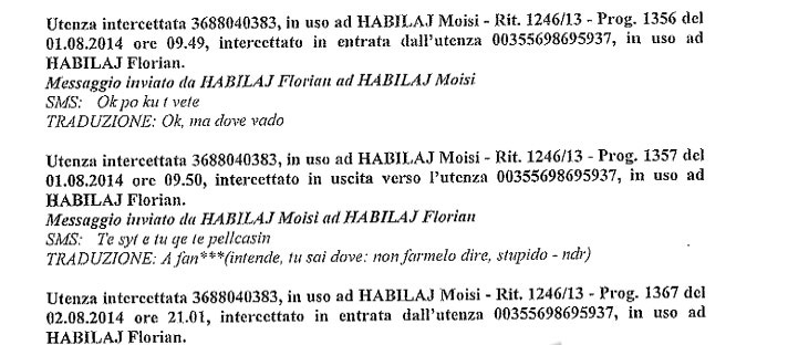 Në dosjen e Prokurorisë italiane për bandën kriminale Habilaj të trafikut ndërkombëtar të drogës, del edhe një përgjim telefonik dhe shkëmbim mesazhesh të bërë mes Moisi Habilajt dhe vëllait të tij, Florjanit, thërritur shkurt edhe Lolo.