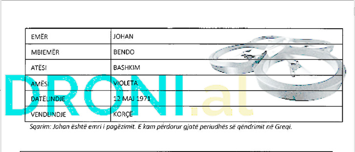 Sipas këtij Formulari, Helidon Bendo pranon se ka përdorur edhe një emër tjetër, sipas tij të pagëzimit. Këtë emër, Johan, mësohet se e ka përdorur në Greqi.