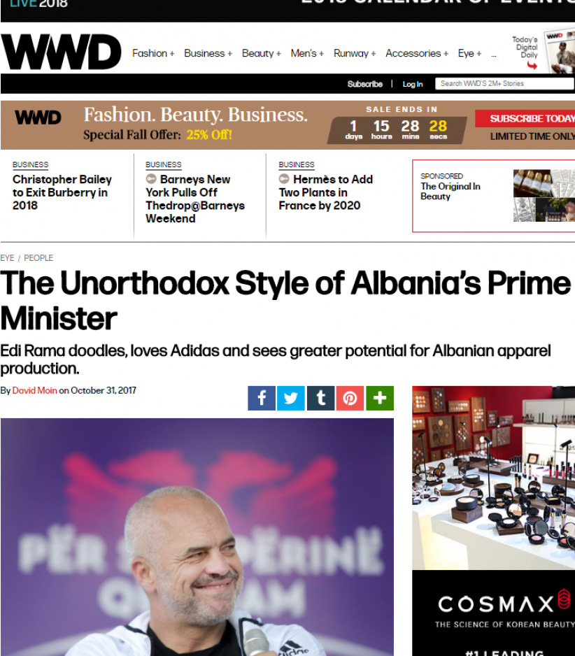 Një nga revistat më të mëdha të modës, “WWD”, ka botuar së fundmi një shkrim për Edi Ramë, duke marrë prej tij shumë prononcime për të shkuarën dhe të ardhmen që ka planifikuar pasi të largohet nga politika.