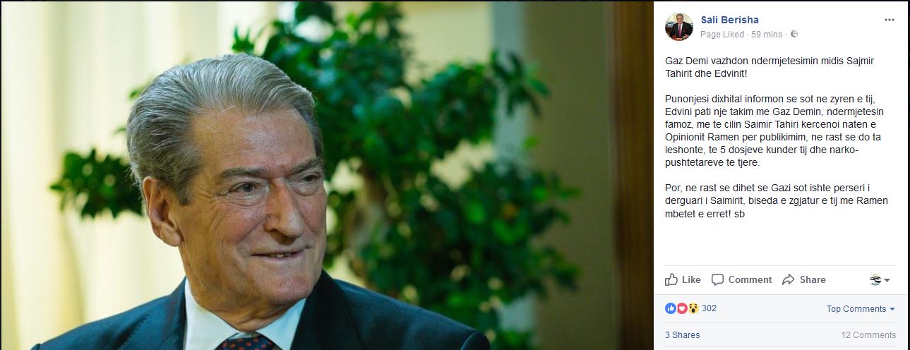 Denoncimin e “punonjësit dixhital” e bën publik ish-kryeministri Sali Berisha, i cili zbulon edhe “detaje” nga takimi i sotëm i Gaz Demit, me Edi Ramën.