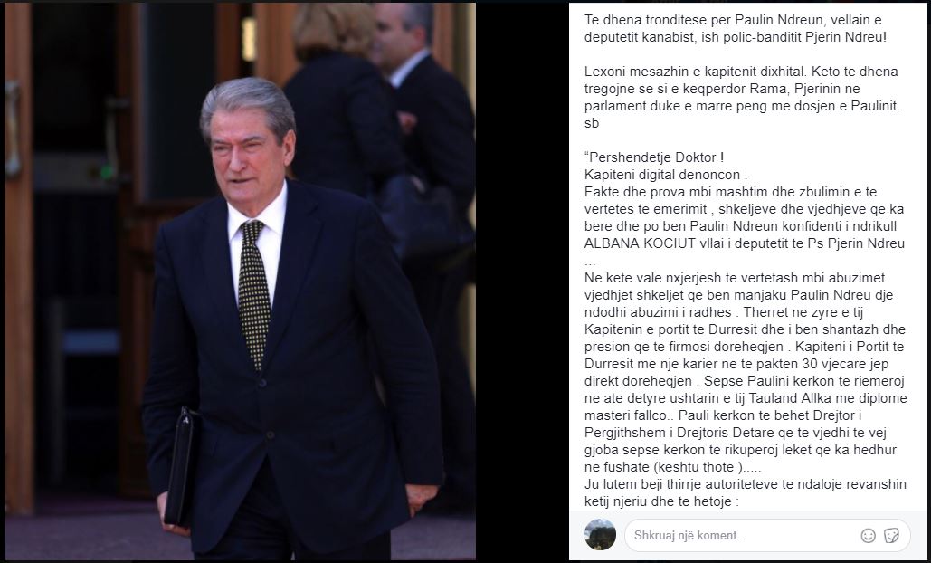 Disa të dhëna tronditëse ka publikuar ish-kryeministri Sali Berisha sot i cili i referohet “kapitenit dixhital” të Portit të Durrësit.