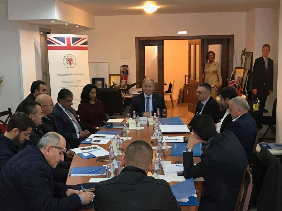 Dhoma Shqiptare Britanike e Tregtisë dhe Industrisë (ABCCI) organizoi dje në Tiranë takimin e parë mes investitorëve britanik dhe disa Bashkive të vendit. Në mesazhin e tij Presidenti Zenel Hoxha vlerësoi mundësinë që i krijohet pushtetit vendor për të lidhur marrëveshje direkte me disa prej emrave më të respektuar të biznesit britanik. Zoti Zenel Hoxha nënvizoi se:” Dhoma ndihet e realizuar që krijoi mundësinë që bashkitë t’i anashkalojnë burokracitë dhe të vendosin lidhje konkrete me biznesin britanik. Financimi britanik i projekteve të tyre do t’i japin shtysë punësimit të të rinjve dhe komuniteteve, duke përmirësuar ndjeshëm cilësinë e jetesës së tyre”. Drejtuesit e lartë të Bashkive të Shkodrës, Kukësit, Beratit, Sarandës, Tropojës, Pukës, Urës Vajgurore, Kuçovës parashtruan projektet e tyre prioritare. Ata u dorëzuan investitorëve britanik planet përkatëse të fizibilitetit dhe propozimet e detajuara në fusha si turizmi malor, infrastruktura, urbanistika, bujqësia, transporti, nafta, agro-industria, mbetjet urbane, ndërtimi i fabrikave etj. Investitorët britanik përfaqësoheshin nga Zonja Chandni Ruparelia, me ekspertizë të gjerë në fushën e projekteve të energjisë dhe të pasurive të paluajtshme; Zoti Ravi Goonesena avokat korporate prej më shumë së 30 vjetësh dhe këshilltar i disa prej kompanive me autoritare britanike, institucioneve financiare e qeverive për investimet e huaja; si dhe Neil Budd i specializuar në energjinë e rinovueshme, personalitet që ka këshilluar zhvillues në shumë vende në të gjitha fushat e këtij sektori dinamik. Ata u ftuan nga Dhoma Shqiptare Britanike nën ombrellën e firmës autoritare Shakespeare Martineau, ndër më të rëndësishmet në Britani për investime jashtë vendit; me një turnover mbi 100 milionë euro në vit. Ata u shprehën pozitivisht për investime në disa sektor. Njëri prej tyre Z. Ravi Goonesena tha:” Ndihemi optimist, pasi disa projekte të propozuara sot nga Bashkitë, edhe pse kanë nevojë për konkretizime të mëtejshme dhe njohje të terrenit, përkojnë me interesat e bizneseve britanike që përfaqësojmë. Ne do të kthehemi shpejt për nënshkrimin e marrëveshjeve”. Të gjithë të pranishmit, vlerësuan përpjekjet dhe angazhimin serioz dhe profesional të Dhomës dhe Presidentit të saj, që krijoi mundësinë e parë, qysh prej vendosjes së pluralizmit, për fillimin e bashkëpunimit direkt mes Bashkive dhe investitorëve britanik.