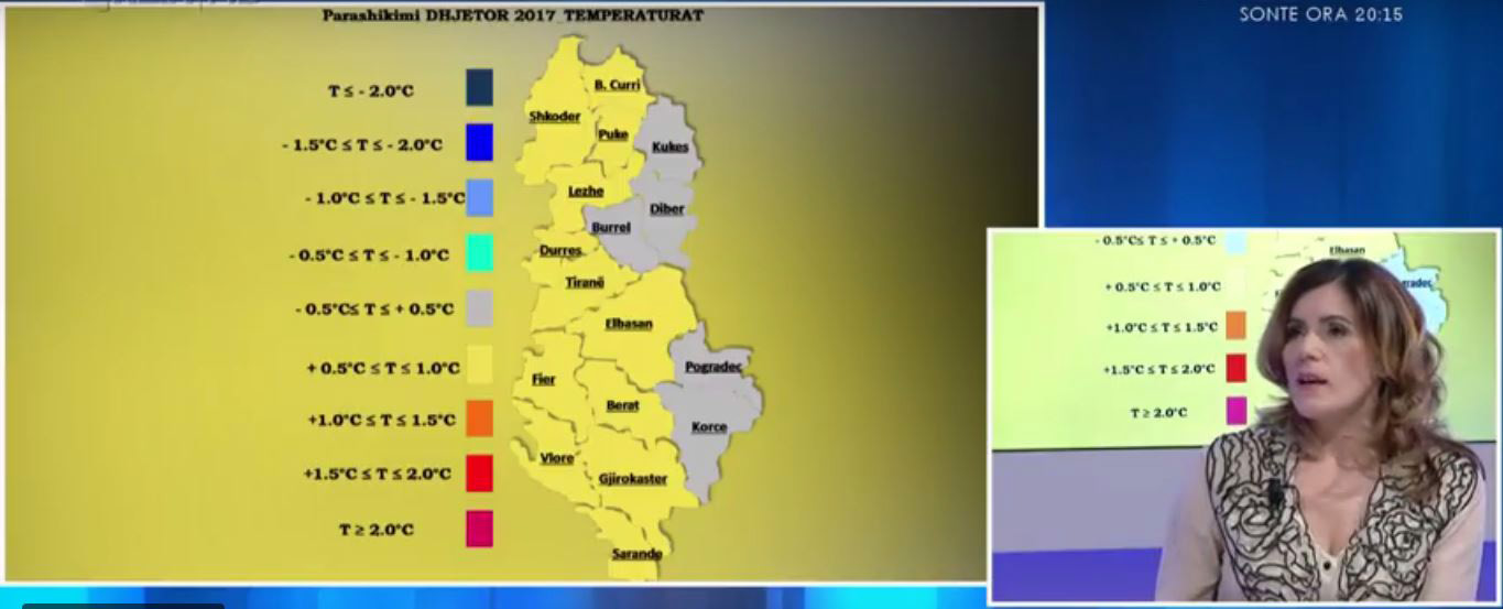 Pavarësisht diellit në shumë zona malore të Shqipërisë ka patur edhe reshje dëbore. E si duket ndoshta dimri është në prag dhe pse jemi në 10-ditëshin e fundit të Nëntorit. Sot, në emisionin “Rudina” ishte e ftuar meterologia e “Meteoalb” Tanja Porja, e cila tha se ky muaj rezulton me temperatura 2 gradë më të larta se një nëntor normal.