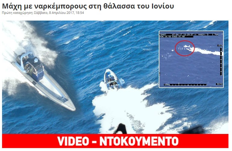 Pamjet e operacionit të Antidrogës Greke që finalizua me kapjen e gomones shqiptare me 2 ton drogë janë publikuar nga media greke Zougla.gr. Gomonia 12 metra e gjatë, që mësohet se u nis nga Himarë kishte itinerarin Shqipëri-Greqi-Itali.