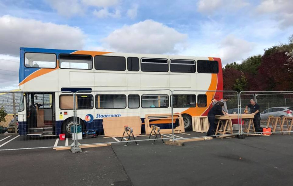 Një nga ofertat ishte një kompani autobusësh, e quajtur Stagecoach që dhuroi një mjet prej 72 vendesh. Rreth 70 – 0 vullnetarë ndihmuan në krijimin e këtij vendi për personat e pastrehë.