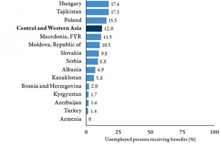 Këto shifra, të ilustruara edhe grafikisht, tregojnë se, në Shqipëri vetëm 6.9% e të papunëve përfitojnë asistencë monetare. Shifra, jo vetëm që është tepër larg 100%, që në vendet më të zhvilluara të botës, dhe kryesisht në Europën veriore janë një standard mëse normal, por e vendos Shqipërinë ndër vendet e fundit në listë në Europë dhe Azinë Qendrore.