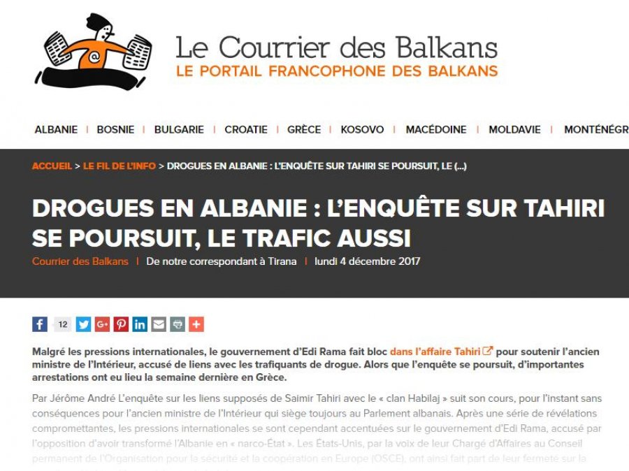Kështu shkruan Courrierdesbalkans.fr në një shkrim të radhës të saj. Sipas saj, edhe pse hetimet janë në vijim, vetëm javën e kaluar në Greqi u kap një sasi e madhe droge, që sipas medieve greke është e miqve të ish-ministrit të Brendshëm.