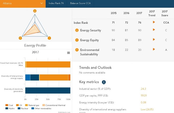 Këshilli Energjetik Botëror ka publikuar së fundmi raportin e quajtur “World Energy Trilemma Index 2017”. Ky indeks ka për qëllim të masë qëndrueshmërinë energjike të një shteti duke u bazuar në tre shtylla kryesore: siguria energjetike, barazia dhe qëndrueshmëria ambientale.