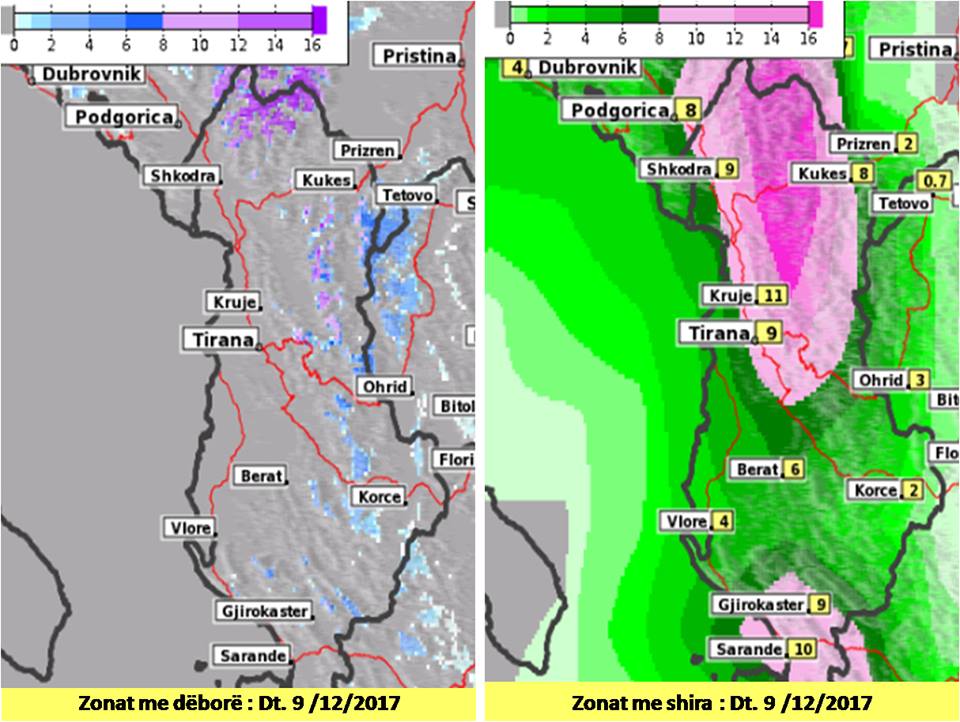 Sipas Meteoalb, “E shtuna paraqitet e vranët me reshje të pakta shiu e dëborë në zonat malore, por duke iu afruar mesditës reshjet intensifikohen kryesisht në Veri dhe Qendër dhe më pak reshje në zonat Jugore. Në mbrëmje reshjet do të pakësohen ndjeshëm por mbeten prezent dhe gjatë natës, kryesisht në formë dëbore.