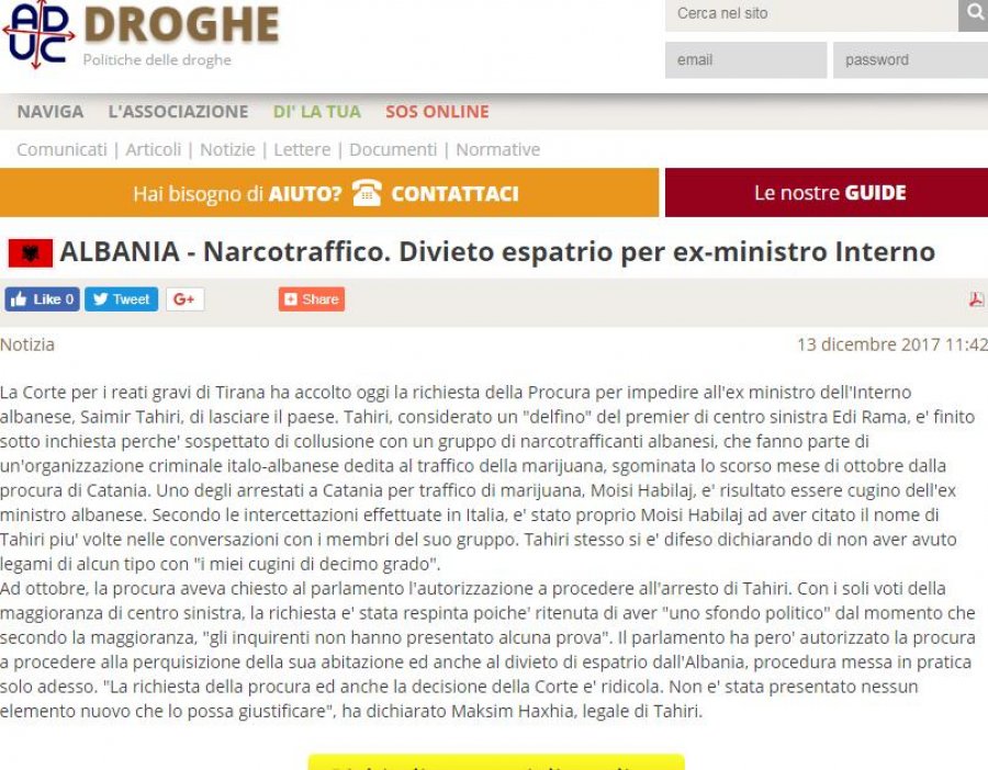 Tahiri, i konsideruar si “delfini” i kryeministrit të qendrës së majtë Edi Rama përfundoi nën hetim pasi dyshohet për bashkëpunim me një grup narkotrafikantësh shqiptarë, anëtarë të një organizate kriminale italo-shqiptare të trafikut të marijuanës, shkatërruar në tetor nga prokuroria e Catanias.