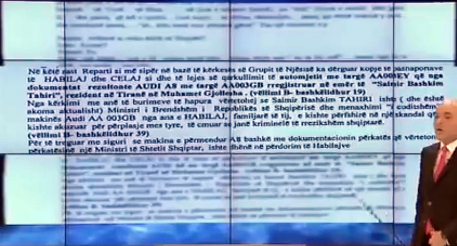 Në studion e emisionit “Opinion”, të Blendi Fevziut në TV Klan, sonte është publikuar një dokument, i cili edhe një herë vë theksin ne përdorimin e makinës së ish-Ministrit të Brendshëm Saimir Tahiri nga vëllezërit Habilaj, të konsideruar të rrezikshëm nga ky dokument.